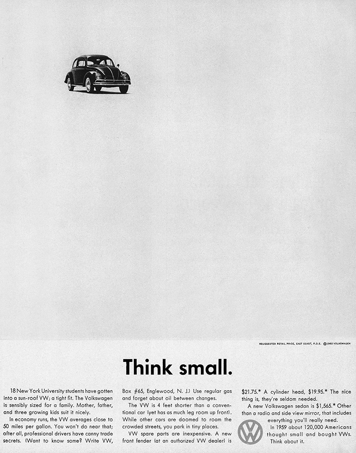 And the Volkswagen ads didn’t change the ethos of advertising only. They helped trigger the Cultural Revolution of the 1960s.